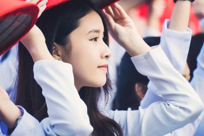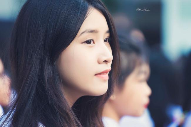 Với mái tóc xoã tự nhiên, gương mặt xinh xắn, nụ cười đáng yêu, cô bạn này trông cực kỳ nổi bật và nhanh chóng thu hút sự chú ý. Ở góc nghiêng, nét dịu dàng và trong sáng của cô nữ sinh khiến mọi người phải mê mẩn.