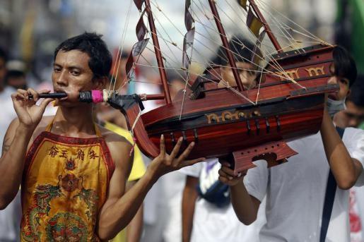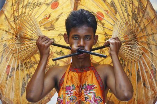 mở màn lễ hội. Hàng năm, lễ hội ăn chay ở Phuket, Thái Lan thu hút hàng trăm