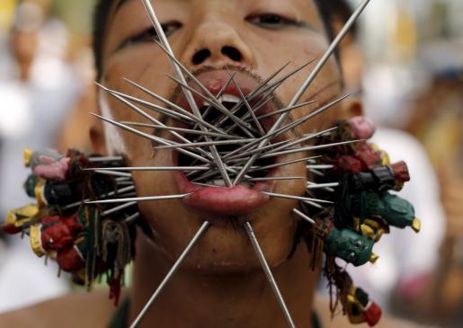 việc hành xác như: bấm khuyên khổng lồ, xỏ lỗ qua cơ thể, đi trên than, chơi pháo nổ ... Không phải ai cũng dũng cảm thử sức với trò "bấm khuyên", những chiếc