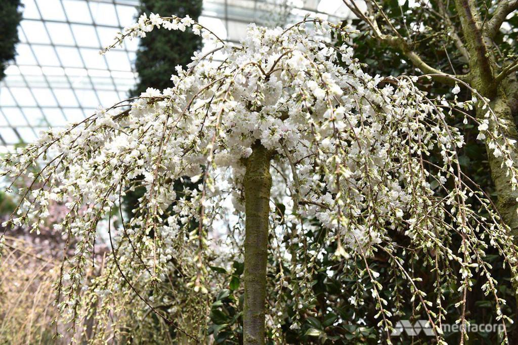 Gardens by the Bay mời cố vấn hoa anh đào Satoshi Kokubun hỗ trợ trong quá trình sắp đặt 23 giống hoa anh đào sẽ nở hoa nối tiếp ở Flower Doom từ 16/3 tới 8/4. Giống hoa Snow Fountain (Thác Tuyết) của Kyoto có các cành rủ xuống và hoa trắng muốt.