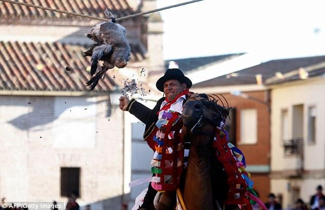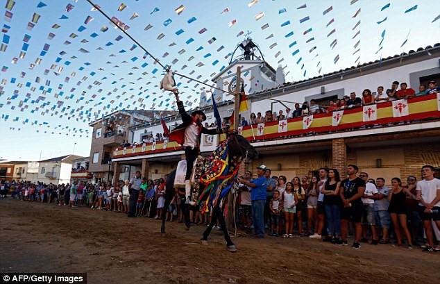 Lễ hội giật đứt cổ ngỗng có tên là St James được tổ chức tại làng El Carpio de Tajo, tỉnh Toledo, Tây Ban Nha hôm 25/7.