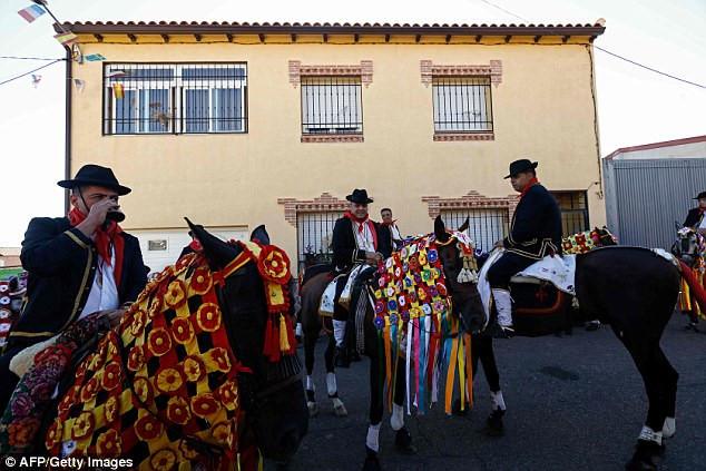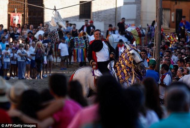 Rất đông khách du lịch đến tham dự lễ hội St James, tổ chức tại làng El Carpio de Tajo, tỉnh Toledo, Tây Ban Nha .