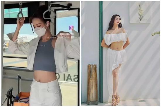 Chiều cao "khủng" gần 1,9m nên Hoa hậu Bảo Ngọc thường xuyên gặp tình huống phải cúi đầu, khom lưng khi đi máy bay, xe bus.