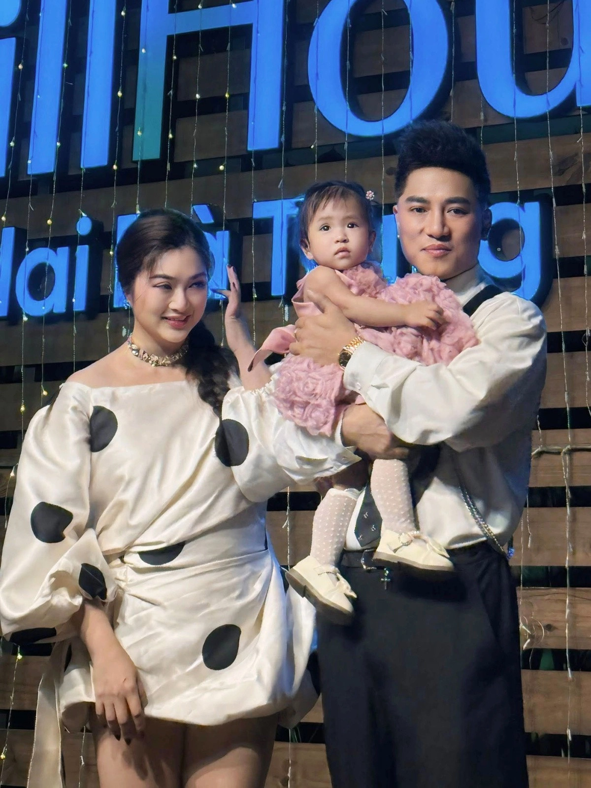 Xuất hiện ở tiệc thôi nôi, rất đông bạn bè của cặp vợ chồng đã đến chúc mừng, trong đó có vợ chồng Lê Phương - Trung Kiên.