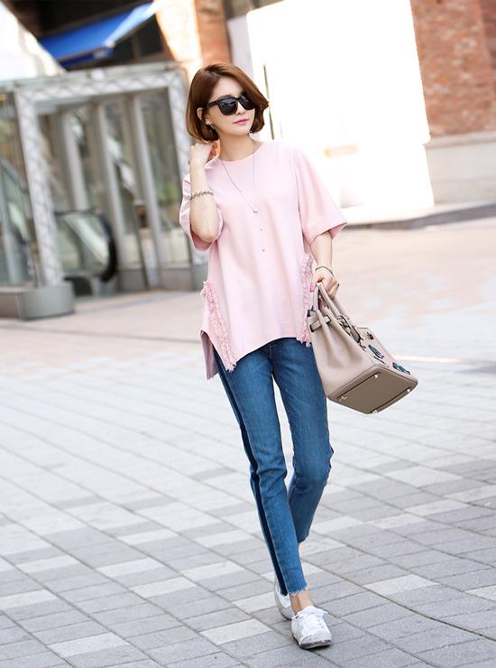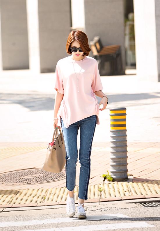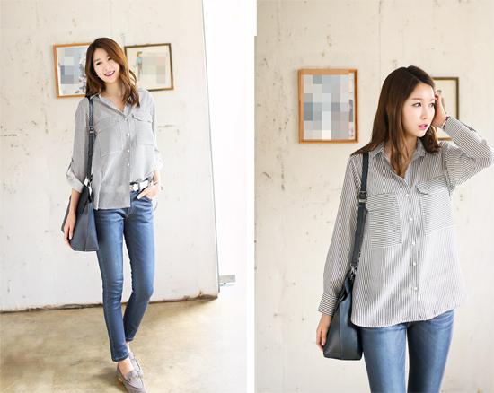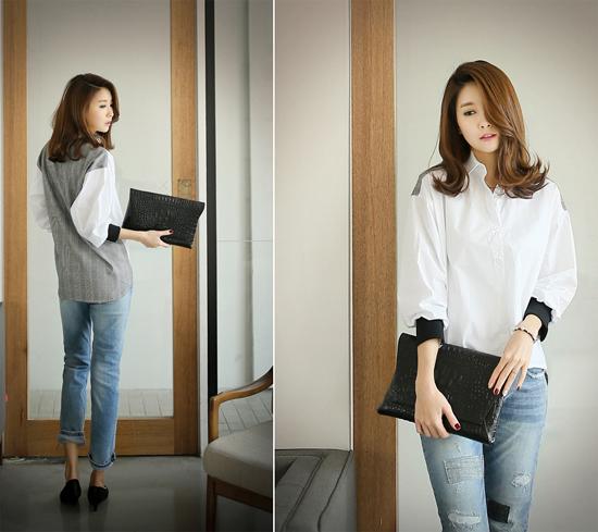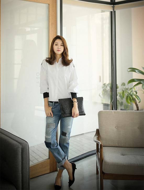 Chú ý, bạn có thể kết hợp buông thả áo sơ mi với quần jeans, hay sơ vin nếu vòng eo thon thả hoặc có thể sơ vin vạt trong, vạt ngoài.... Ngoài ra, sự lựa chọn quần jeans rách nhẹ, "xé gấu", chắp vá sẽ tạo nên sự phá cách bất ngờ.