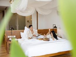 Khoảnh khắc mùi mẫn của vợ chồng Liêu Hà Trinh trong không gian trăng mật.