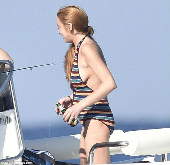 Mới tuần trước Lindsay Lohan đã gây ngạc nhiên với người hâm mộ khi tuyên bố cô đã có thai thông qua Instagram. Và hôm nay Lindsay đã cho thấy đúng là bụng cô đã bắt đầu hơi tròn khi cô mặc một bộ đồ bơi dạng áo quây một mảnh trong khi vui chơi thư giãn trên một chiếc du thuyền sang trọng hôm thứ Năm vừa qua, tuy nhiên cũng có thể là do cô vừa thưởng thức một bàn ăn trưa lớn nên bụng có thể to ra như vậy