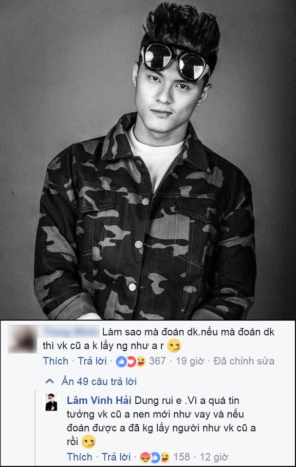 Ngay sau lời chia sẻ, nam diễn viên Găng tay đỏ đã phải đối mặt với hàng ngàn lời chỉ trích: "Làm sao mà đoán được. Nếu mà đoán được thì vợ cũ đã không lấy người như anh rồi". Trái với thái độ bình tĩnh khi nghe những chỉ trích nặng nề từ vợ cũ như trước đây, lần này, Lâm Vinh Hải quay lại đáp trả bằng lời lẽ đanh thép: "Vì anh quá tin tưởng vợ cũ nên mới như vậy. Nếu đoán được, anh đã không lấy người như vợ cũ anh rồi".