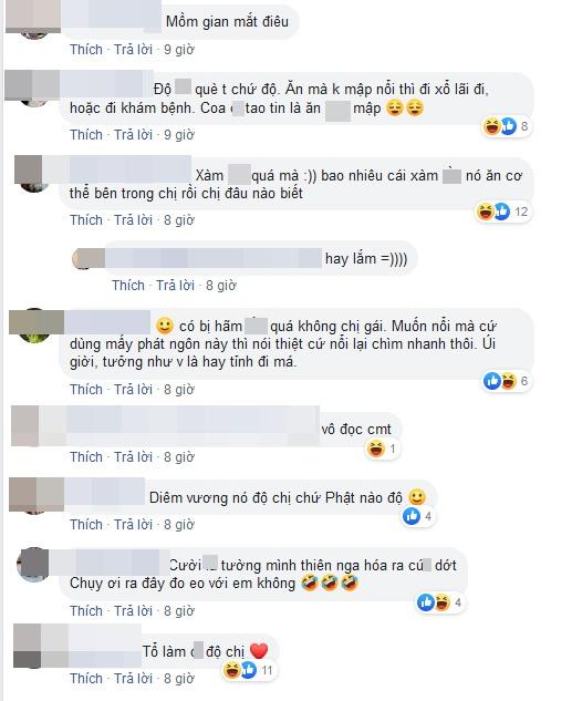 Ngay khi bức hình được chia sẻ, bạn gái Lâm Vinh Hải nhận tới tấp "gạch đá" từ cư dân mạng: "Bác sĩ độ chị chứ Phật nào dám độ", "Độ loa thì có ai độ chị", "Ăn mà không mập thì nên đi khám bệnh", "Chị có bị hãm quá không chị gái. Muốn nổi mà cứ dùng mấy phát ngôn gây sốc thế này thì chỉ có chìm đi thôi"...