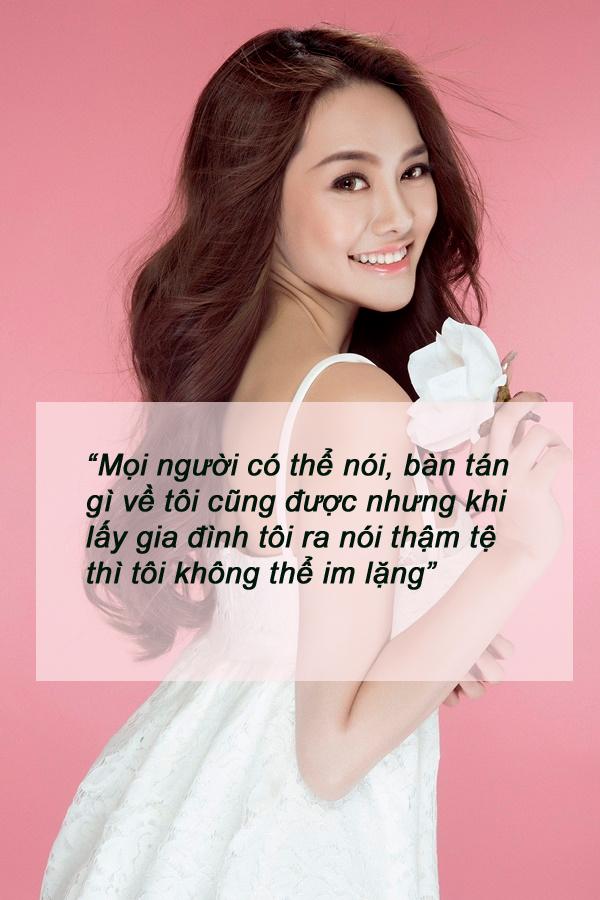 Tính tôi khi làm việc phải suy nghĩ rất kỹ, không còn bồng bột nữa. Mọi người có thể nói, bàn tán gì về tôi cũng được nhưng khi lấy gia đình tôi ra nói thậm tệ thì tôi không thể im lặng được nữa. Cho đến thời điểm hiện tại, tôi sẽ để mọi chuyện trôi hết, im lặng là tốt nhất, thực hư thế nào sau này sẽ có lời giải đáp. Im lặng là giải pháp tốt nhất trong thời điểm này.
