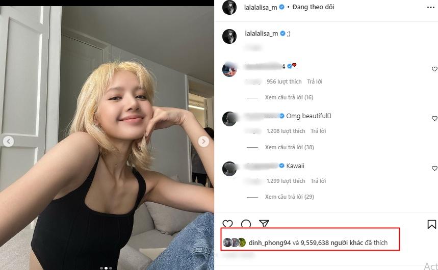 Mới đây, Lisa BLACKPINK tung loạt ảnh đời thường lên trang cá nhân. Loạt ảnh không có gì đặc sắc, thậm chí caption cũng chỉ là một icon đơn giản nhưng bức ảnh của nàng rapper vẫn hút gần 10 triệu tim chứng minh độ hot của thành viên nhóm nhạc hàng đầu Kpop.
