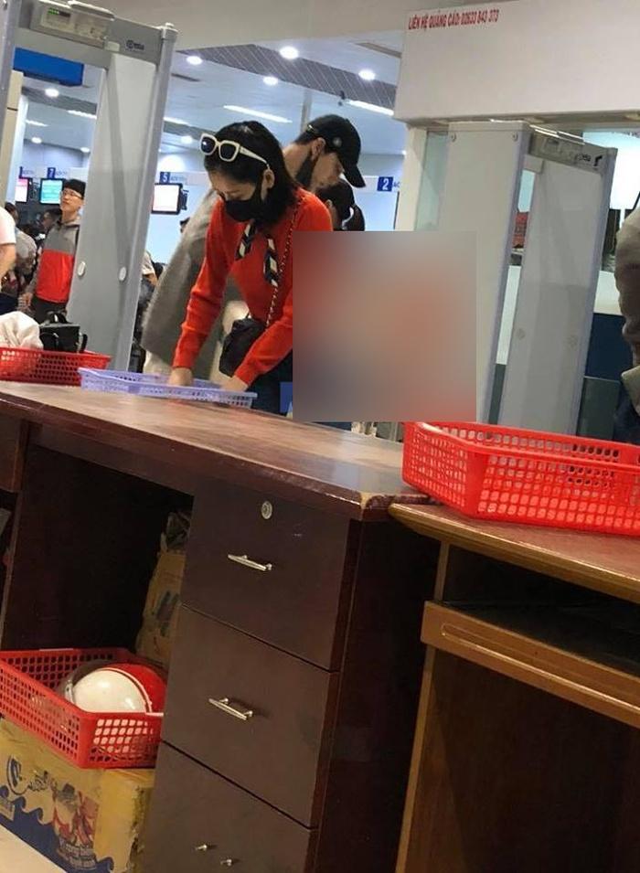 Trong ảnh, hot girl Hà thành đeo khẩu trang, ăn mặc đơn giản và đang cùng bạn trai tin đồn sắp xếp hành lý tại sân bay. Tuy cặp đôi ăn vận kín mít, nhưng người hâm mộ vẫn nhận ra họ.