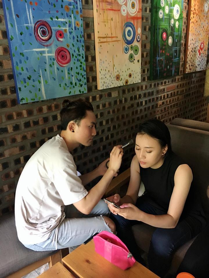 Công cuộc làm đẹp của nữ chính trước một cảnh quay.