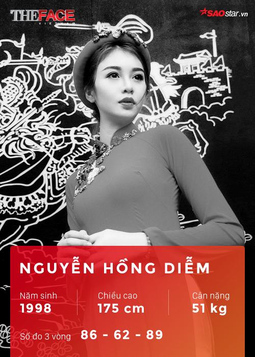Nguyễn Hồng Diễm là gương mặt hoàn toàn mới và trẻ nhất trong dàn thí sinh The Face năm nay. Tuy nhiên, cô gái 19 tuổi này khiến tất cả đàn chị phải dè chừng với chiều cao "khủng" 1m75 cùng số đo chuẩn mực 86 - 62 - 89.