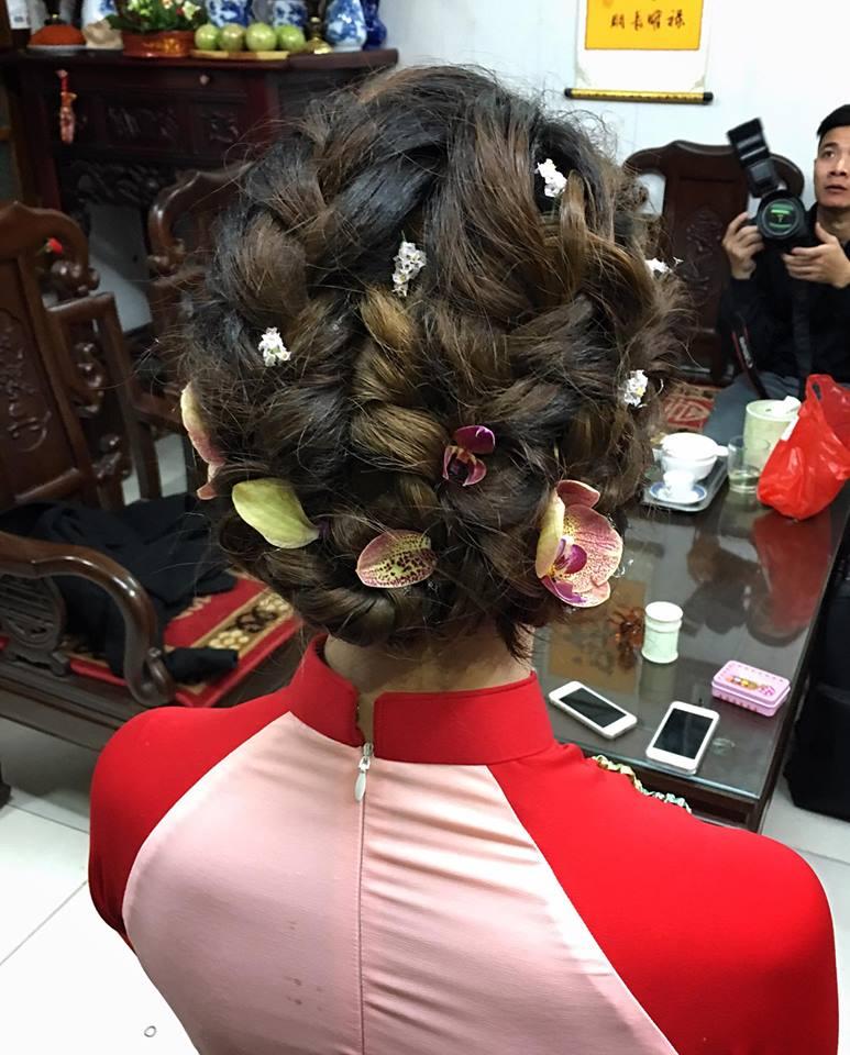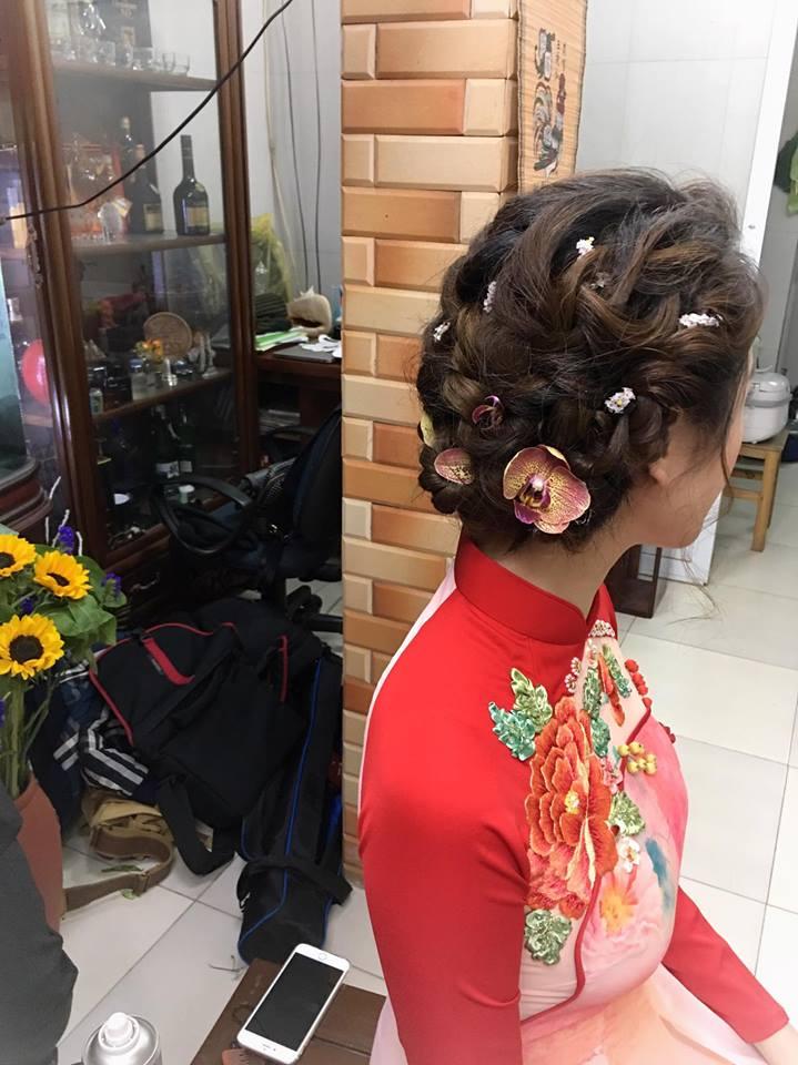 Cô dâu Hoàng Anh trang điểm chuẩn bị cho ngày trọng đại