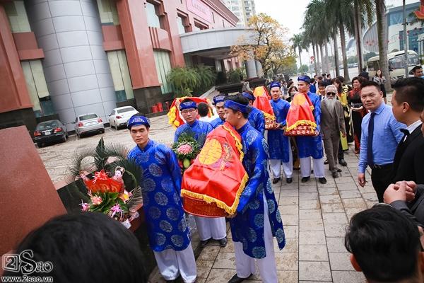 Khoảng 10h sáng, nhà trai đã có mặt tại nhà cô dâu và thực hiện những nghi lễ truyền thống. Lễ cưới chính thức sẽ được tổ chức vào ngày 22/3 tới.