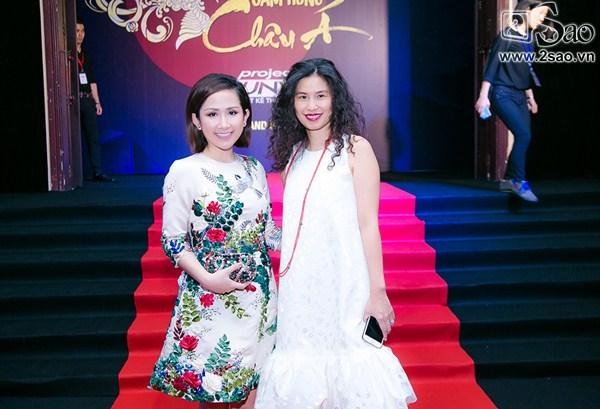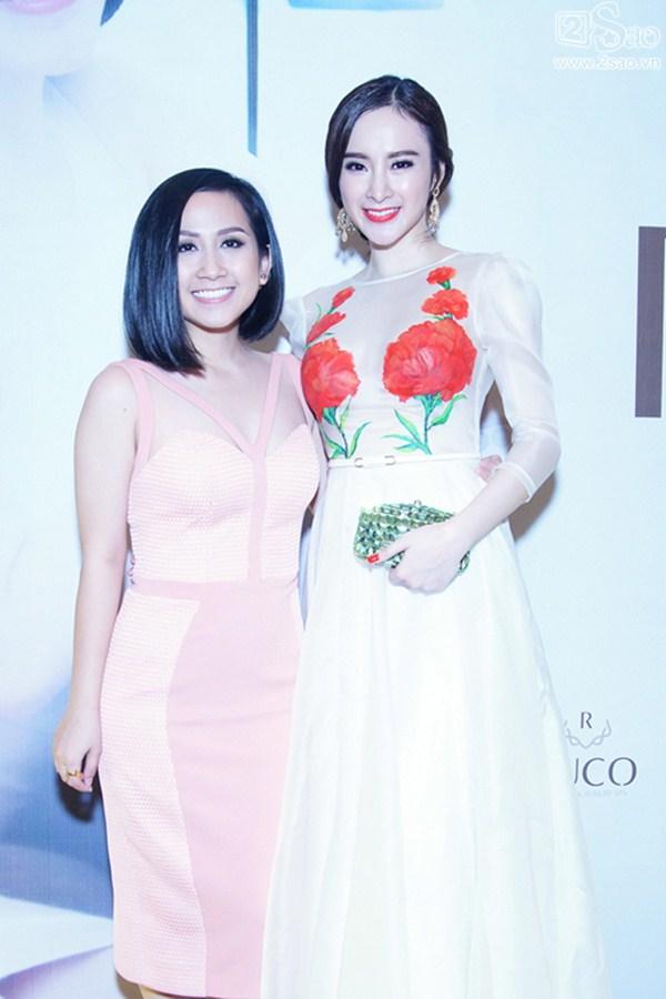 Cũng trong sự kiện này, Trâm Nguyễn hội ngộ người chị em thân thiết - Angela Phương Trinh. Đây là sự kiện hiếm hoi "bà mẹ nhí" xuất hiện sau một thời gian dài rong ruổi trên phim trường "Taxi, em tên gì" chung với danh hài Trường Giang.