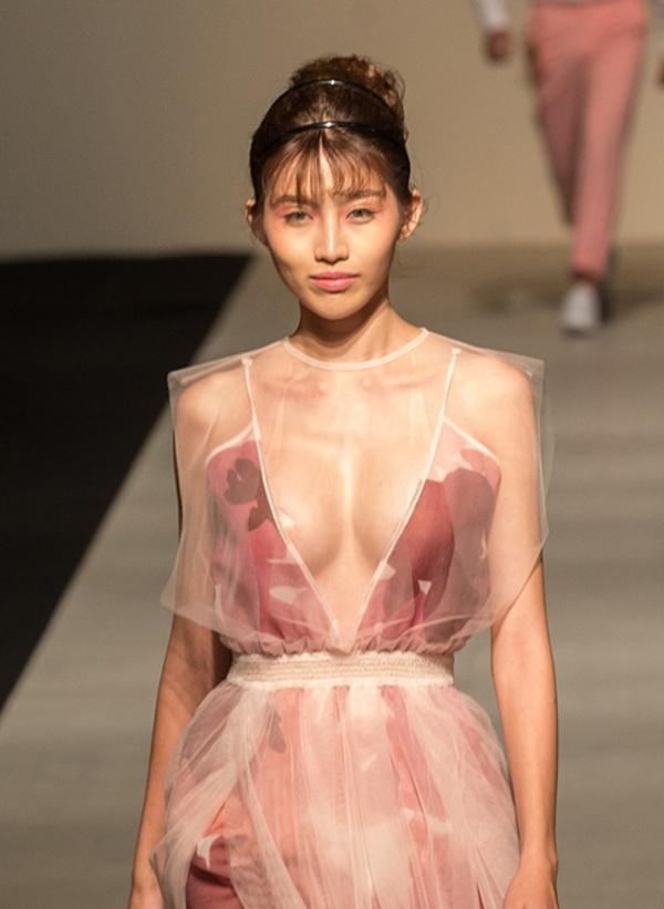 Vòng một gợi cảm giúp cô nổi bật trên sàn diễn.