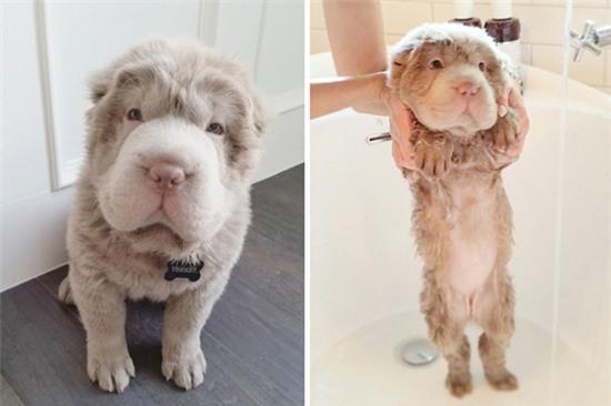 Cho dù bảnh bao trải chuốt hay ướt nhẹp thì chú cún này trông vẫn rất đáng yêu.