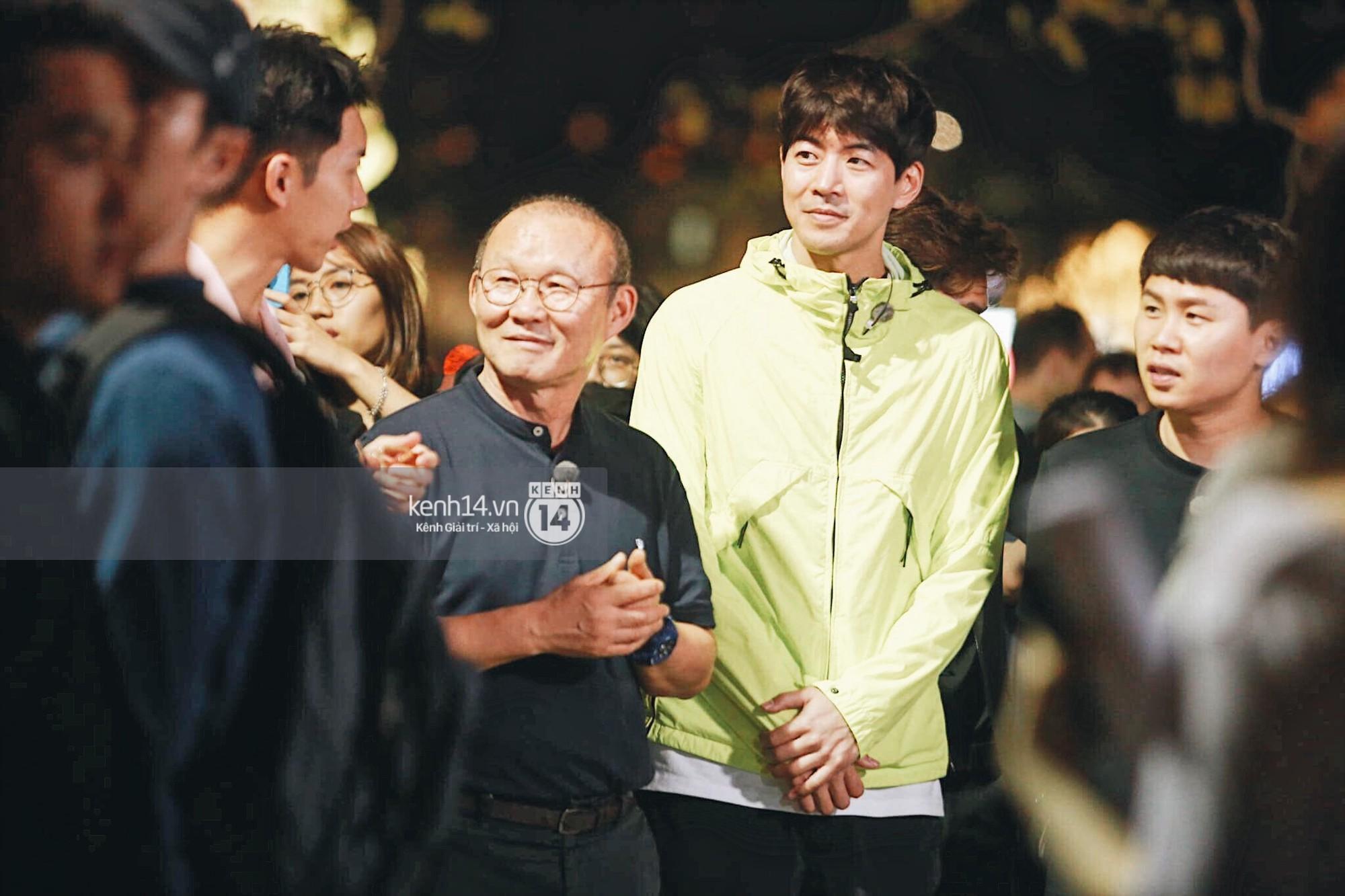 Lee Seung Gi diện bộ cánh nổi bật, khoe đôi chân dài. Anh luôn theo sát ông Park Hang Seo
