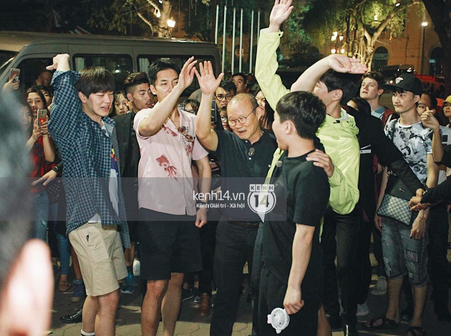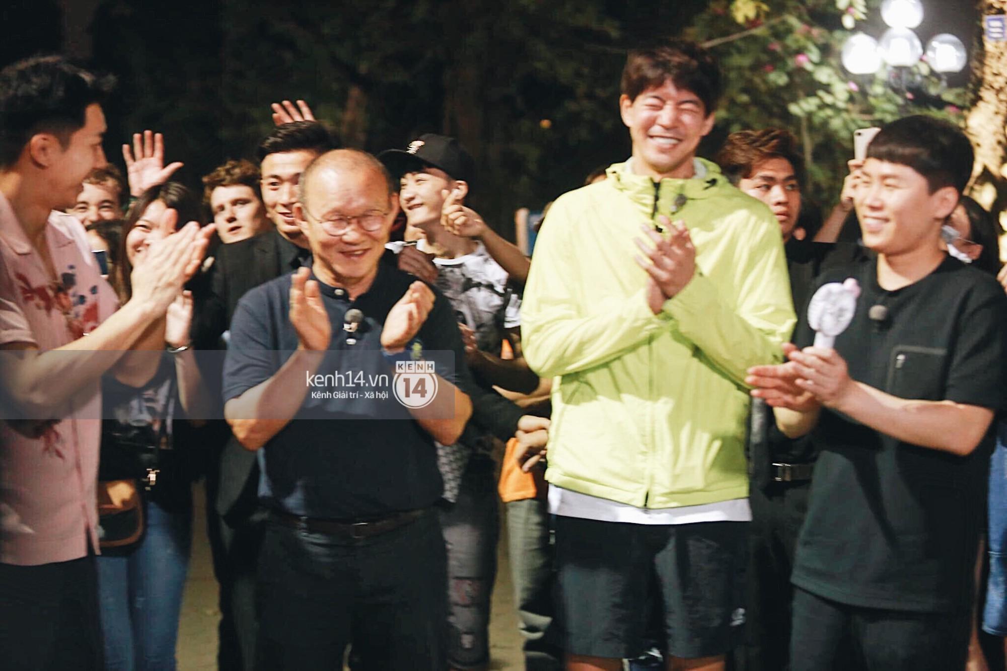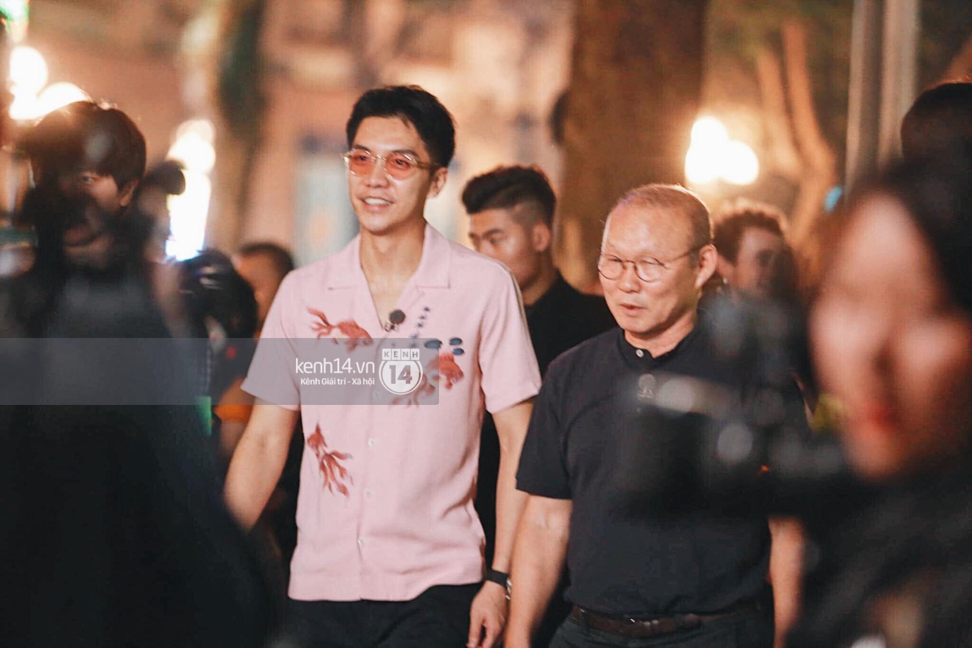 Đoàn nghệ sĩ đình đám xứ Hàn và HLV Park Hang Seo xuất hiện tại Hồ Gươm, ngay lập tức khiến khu vực này náo loạn trong biển fan