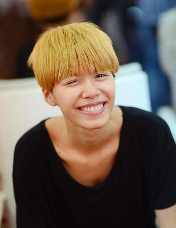 Minh Tú kém sắc với mái tóc tém vàng chóe.