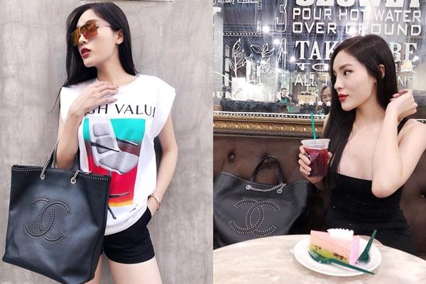 Hoa hậu Kỳ Duyên là một trong những tay chơi hàng hiệu của giới showbiz Việt. Cô sở hữu hàng loạt món đồ đắt tiền đến từ nhiều thương hiệu cao cấp quốc tế. Tuy nhiên, có những phụ kiện được cựu Hoa hậu yêu thích và thường xuyên sử dụng ở nhiều hoạt động. Trong ảnh là chiếc túi xách shopping phiên bản lớn của Chanel có phom dáng đơn giản, chất liệu da bê và hoạ tiết đính kim loại.