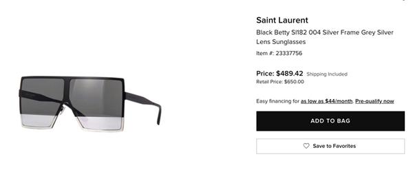 Mức giá của chiếc kính Saint Laurent này khá đắt đỏ, lên đến gần 490 USD, tương đương 11 triệu đồng.