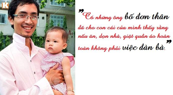 Thế nhưng, trong xã hội hiện nay, "Mẹ" không chỉ gói gọn trong phạm vi hẹp đó nữa, bởi còn có rất nhiều những ông bố đơn thân bất đắc dĩ trở thành mẹ của những đứa trẻ là chính con mình. Họ đâu chỉ gánh trọng trách làm cha, mà còn gánh vác cả trách nhiệm làm mẹ.