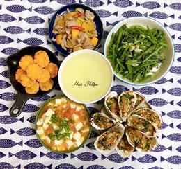 Bữa cơm nào mẹ đảm cũng chuẩn bị tươm tất từ món chính đến món tráng miệng