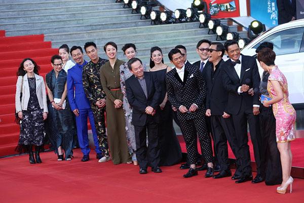 Cả đoàn làm phim vui vẻ trên thảm đỏ