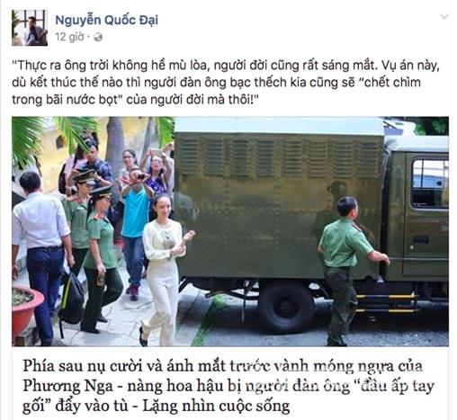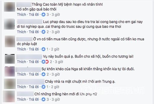 Trong khi vụ việc vẫn chưa ngã ngũ ai đúng ai sai, nhiều sao Việt, đặc biệt là nam giới đã bày tỏ sự phẫn nộ đối với cách ứng xử của đại gia Cao Toàn Mỹ. Không chỉ thế, cư dân mạng cũng dậy sóng, "ném đá" không thương tiếc. Đa số mọi người lên tiếng bày tỏ sự thương xót, đồng cảm với Phương Nga và dành nhiều lời chỉ trích cho vị đại gia nhẫn tâm đẩy người tình vào vòng lao lý này.