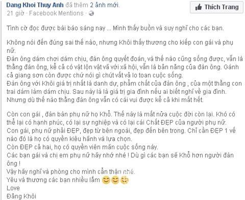 Đăng Khôi cho rằng "đàn ông dám chơi dám chịu" và quan trọng nhất đàn ông phải có