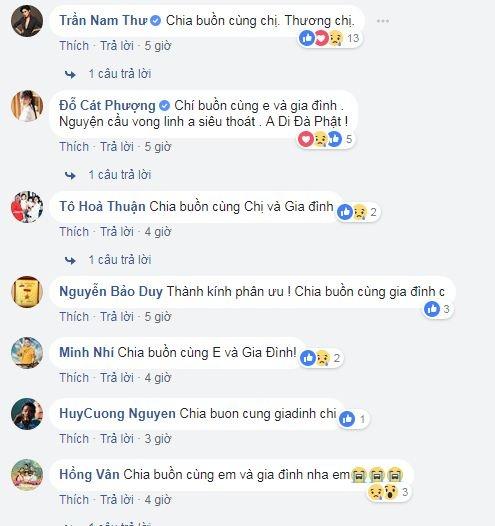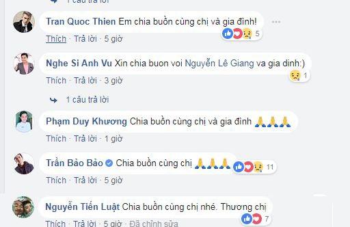 Mới đây, nghệ sĩ Lê Giang đã treo avatar đen cùng lời chia sẻ: "Vĩnh biệt anh hai. Ai di đà phật". Rất nhiều sao Việt như Cát Phượng, Quốc Thuận, Nam Thư, Hồng Vân, Minh Nhí... đã gửi lời chia buồn đến gia đình của diễn viên hài Lê Giang.