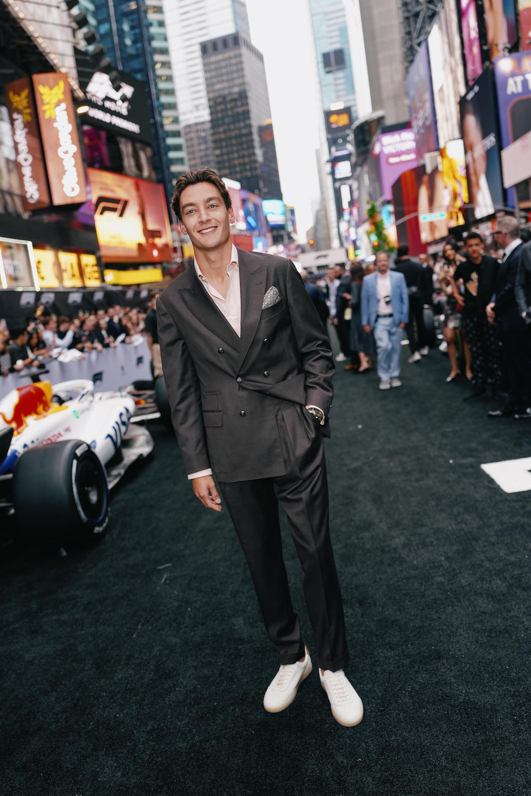 Tại thời điểm bộ phim ghi hình tại một chặng đua, các fan đã bắt gặp hình ảnh Brad Pitt, Charles Leclerc và George Russell ăn mừng cùng nhau. Nhiều tay đua F1 gọi vui George Russell là “diễn viên giỏi nhất” trong các tay đua, làm tăng kỳ vọng vào màn xuất hiện của anh trong phim.