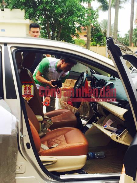 Cảnh sát khám nghiệm chiếc xe Vios của nạn nhân