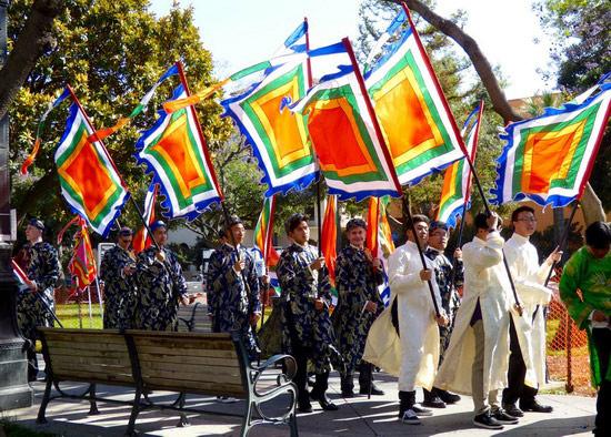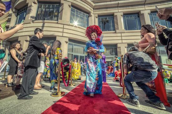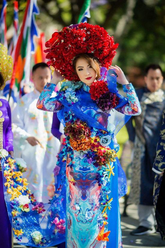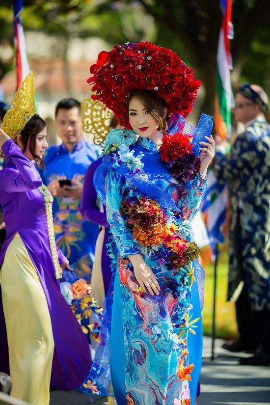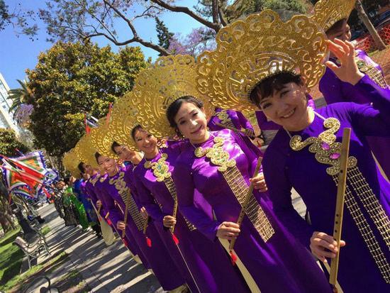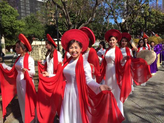 Những tà áo dài lộng lẫy sắc màu xuống phố trong niềm hân hoan của cộng đồng người Việt tại California. Không chỉ có người Việt, mà người nước ngoài cũng không ngại ngần khoác lên mình tà áo dài truyền thống của Việt Nam