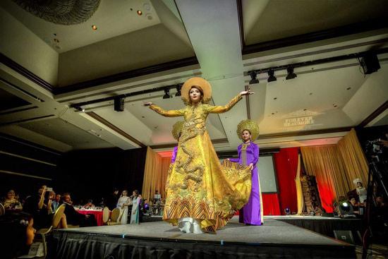 Hoa hậu Châu Á tại Mỹ - Jennifer Chung được lựa chọn để diện những chiếc áo dài lộng lẫy nhất để trình diễn.