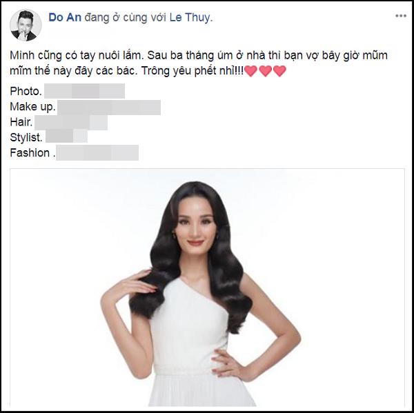 Cùng thời điểm, ông xã Lê Thúy cũng chọn đăng một hình khác của cô trong bộ ảnh mới. Đỗ An tiết lộ bí mật đằng sau nhan sắc và thân hình "có da có thịt" của Lê Thúy ở thời điểm hiện tại.