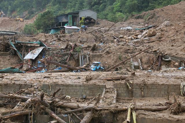 Sau đó, người đàn ông này có nhờ những người thân trong gia đình tới xem vợ với con nhưng thấy đất đá sạt xuống vùi lấp hết cả.