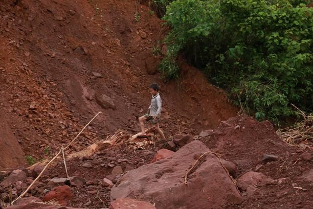 Anh Lò Văn Xanh dùng đôi bàn tay trần bới đất đá tìm vợ con.