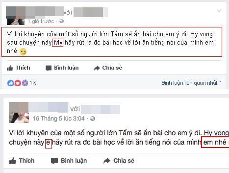 T.H đã chỉnh sửa lại những dòng trạng thái viết về Huyền My trên mạng xã hội. Theo đó, tất cả chữ "My" được sửa lại thành "em"