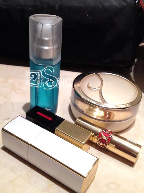 Phấn nền, son môi, bình xịt nước dưỡng da luôn được Mỹ Dung mang theo để...làm đỏm