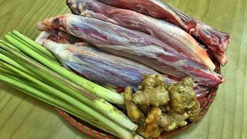 – Bắp bò rửa sạch, cho vào bát to, thêm nước mắm và rượu vào rồi đảo đều, để ướp cho bắp bò ngấm thấm (nếu có lạt hoặc chỉ chuyên dùng để bó thịt khi luộc thì nên dùng để buộc chặt miếng bắp bò lại, khi luộc xong thịt bắp bò sẽ ngon hơn).