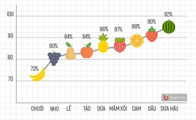 Biểu đồ lượng nước trong 9 loại quả quen thuộc