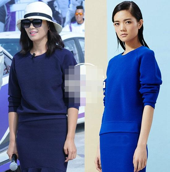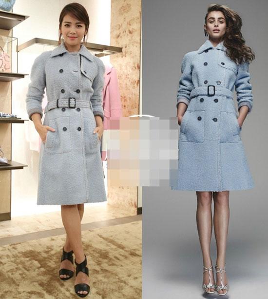 Bộ đồ màu xanh của hiệu Comme Moi thu 2015 giúp cô khoe làn da
