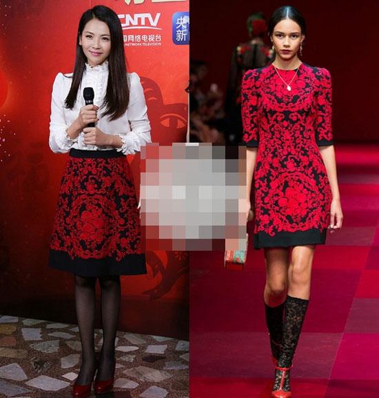 Khi mặc váy họa tiết hoa văn đỏ của Dolce & Gabbana, mỹ nhân