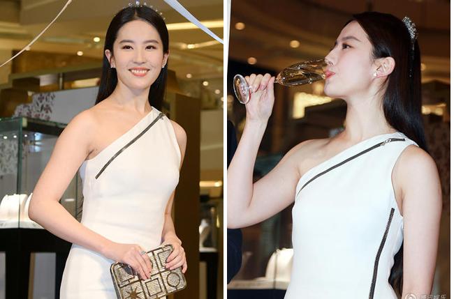 Lưu Diệc Phi cũng không ngại sử dụng đồ uống có cồn khi tham dự sự kiện.
