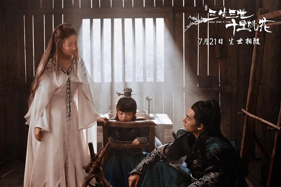 Ngoài clip, đoàn phim Tam sinh tam thế thập lý đào hoa còn công bố loạt ảnh đẹp của Dạ Hoa, Bạch Thiển và Cục Bột Nhỏ. Cả ba có những giây phút đầm ấm, hạnh phúc bên nhau trong ngôi nhà tranh dưới núi Tuấn Tật.