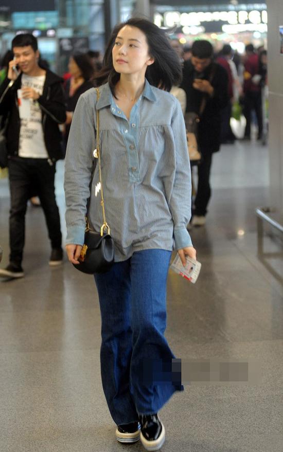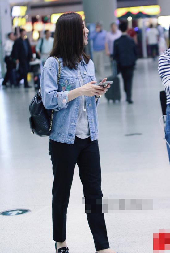 Lưu Thi Thi vừa thanh lịch lại cá tính trong chiếc áo khoác denim hiệu Miss Sixty, giày bệt và ba lô nhỏ xinh của hiệu danh tiếng Chanel. Với bạn gái vóc dáng nhỏ nhắn thì đây là style rất thích hợp ể tạo cái nhìn về thân hình gọn gàng hơn.